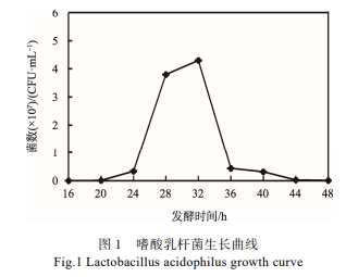 對嗜酸乳桿菌進(jìn)行活化擴(kuò)培,并繪制菌體生長曲 線?;罹鷶?shù)的測定采用平板菌落計數(shù)法。