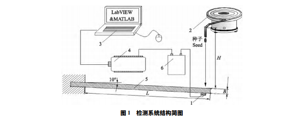 金屬薄板材料選用 65Mn 彈簧鋼,鋼板一端固定另一端懸空,成懸臂梁狀態(tài),傳感器用萬能膠固定在 鋼板自由端下表面。種子在一定的高度( H) 自由下落,撞擊鋼板隨后彈出,鋼板產(chǎn)生振動。振動給料機安 裝在高度可調(diào)節(jié)的支撐臺上,并在出料口加設一段溜槽,確保種子每次撞擊鋼板的位置都在同一范圍內(nèi)。 裂穎種子通常在頭部穎殼開裂較大并與內(nèi)部糙米分離,而正常種子穎殼勾合緊貼內(nèi)部糙米,因此為保證種 子下落時頭部撞擊鋼板,按頭朝前胚朝后的方向?qū)⒎N子放入振動給料機螺旋槽中,這樣振動給料機在出種 時種子則會沿著溜槽頭朝下胚朝上豎直下落。為保證種子撞擊鋼板后隨即彈出,使鋼板自由端向下傾斜 一定角度( 約 10°) 。