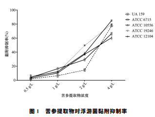 1.4.2 苦參提取物對浮游菌黏附抑制試驗