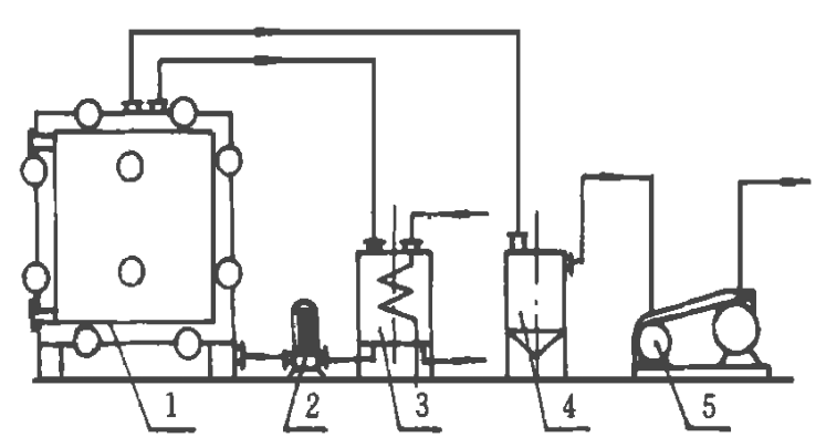 干燥物愈合海綿系質(zhì)輕軟且多孔的海綿狀物 , 呈白色或微黃色 , 具有吸水性。 其初始含水量大于90% , 要求干燥后產(chǎn)品含水量小于14% , 物料允許干燥溫度35℃左右。圖1為愈合海綿干燥工藝流程圖。 干燥箱為間歇操作 , 并通過真空泵獲取真空; 加熱介