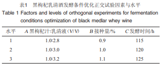 1.3.3 黑枸杞乳清酒發(fā)酵工藝優(yōu)化正交試驗(yàn)