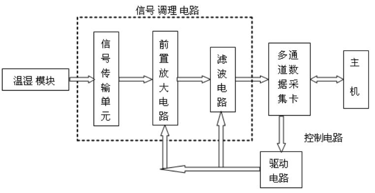 對于整個溫濕度控制系統(tǒng)而言,對傳感器的電壓信號展開放大及濾波等操作是整個硬件部分的核心功能,依靠數(shù)據(jù)采集卡把信號送往控制平臺 ;根據(jù)實踐的相關(guān)要求,通過控制系統(tǒng)來發(fā)出控制的信號,數(shù)據(jù)采集卡來負(fù)責(zé)驅(qū)動執(zhí)行,這樣可以對溫度進行調(diào)控。